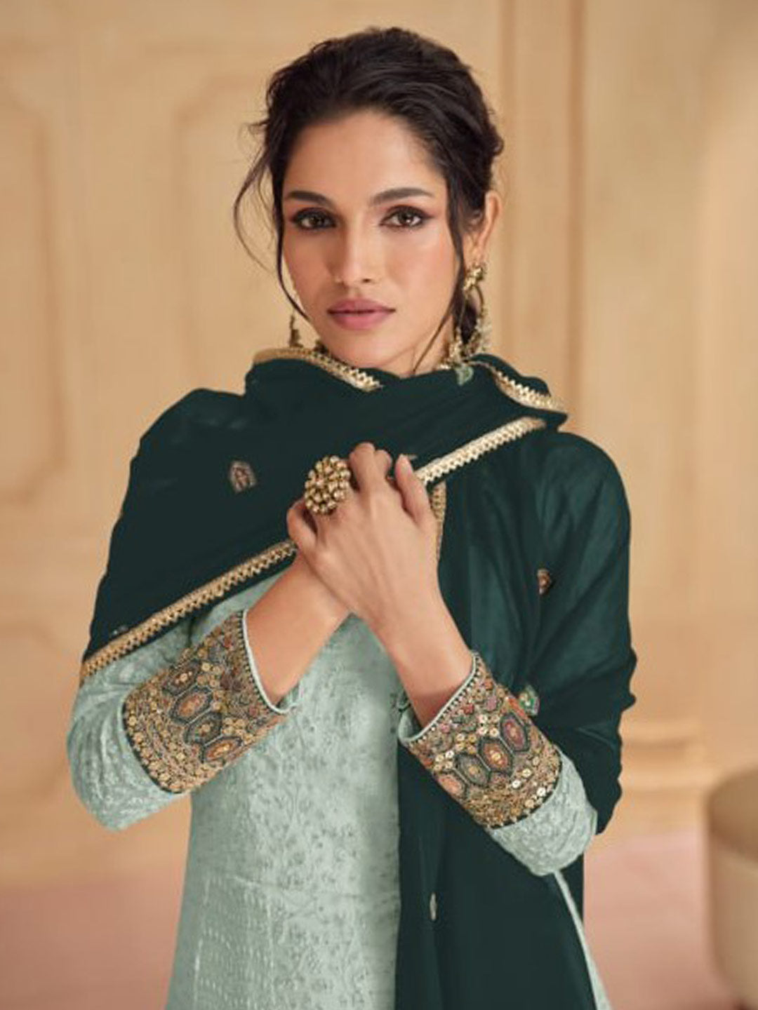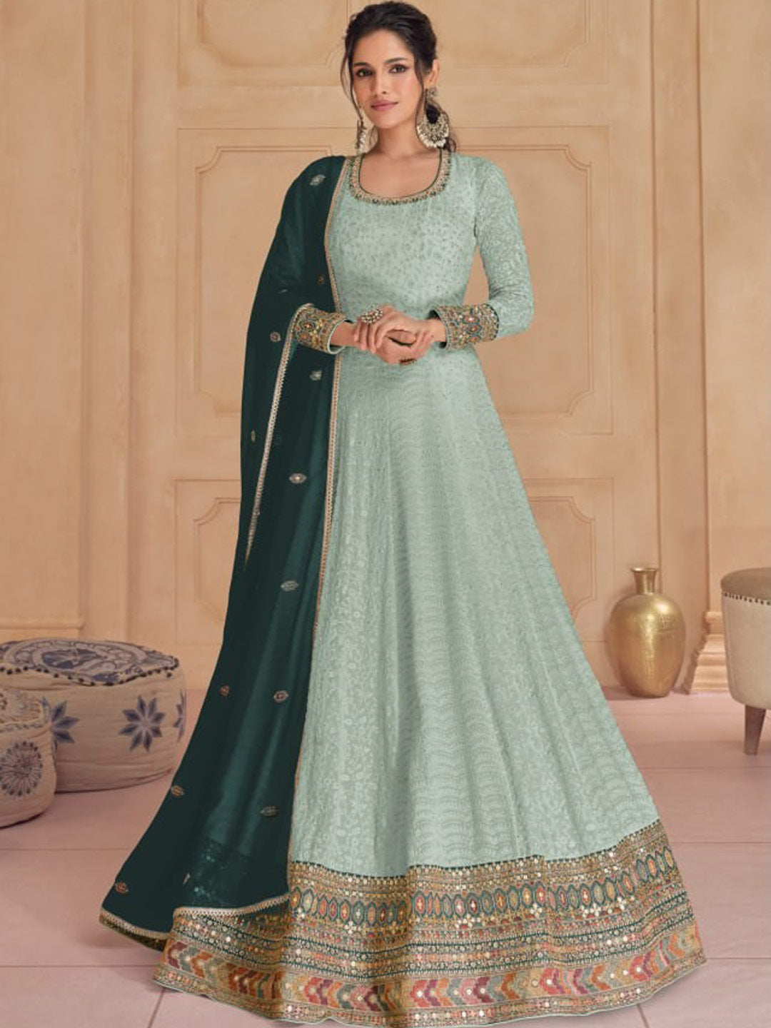 "Aqua Grace Heavy Embellished Anarkali suite"