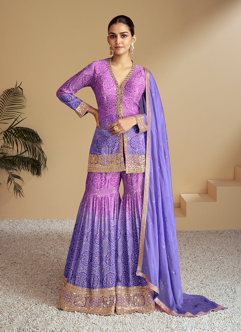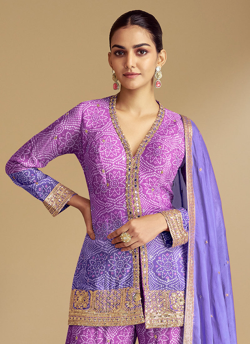 "Dusky Bloom Lavender & Purple Sequin palazzo Suit set"