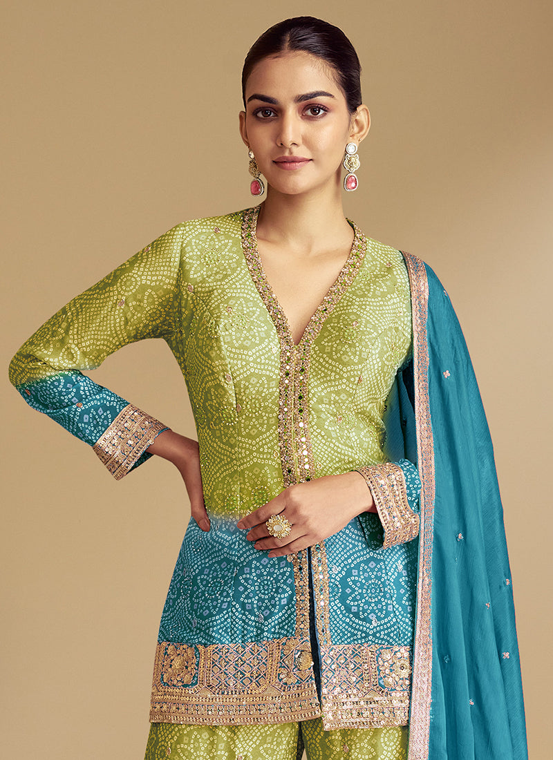 "Emerald Tide Green & Teal Embroidered Sequin palazzo suite Set"