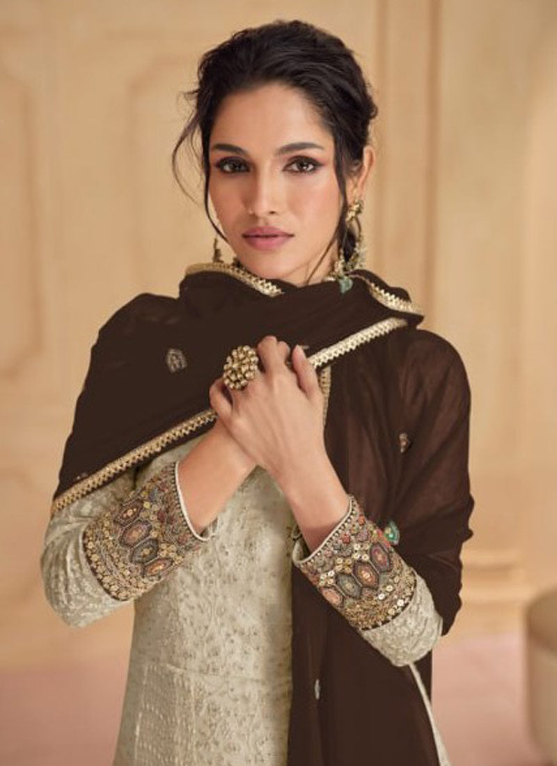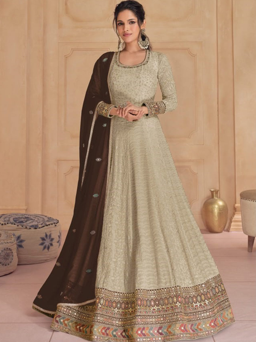 "Ivory Dusk Heavy Embroidery Flared Anarkali Set"