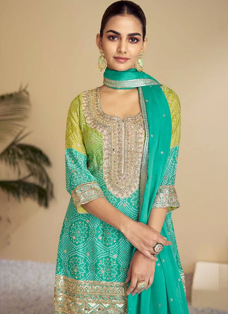 "Lagoon Light Sequin Work Palazzo Suit set for women"