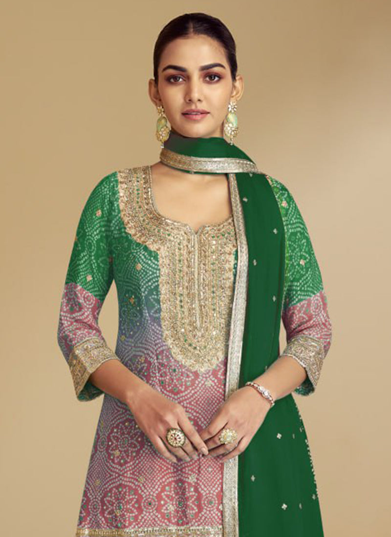 "Lush Leaf Embroidered Palazzo Ensemble suite set"