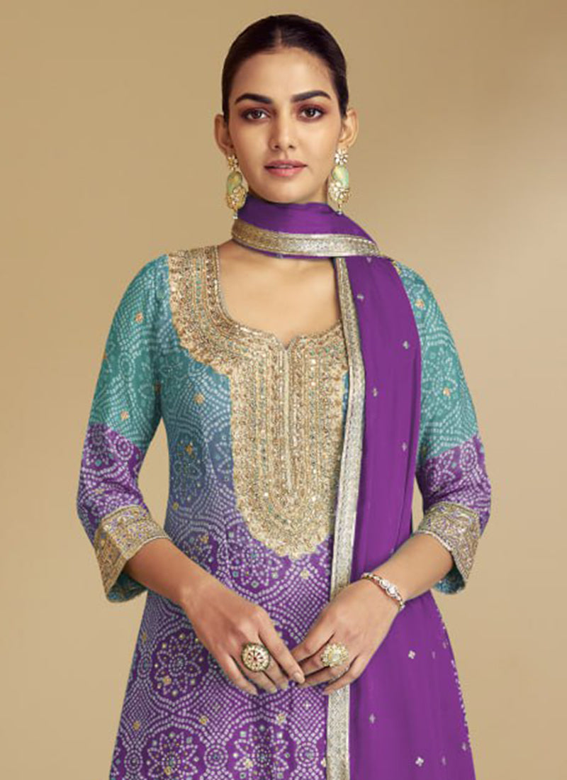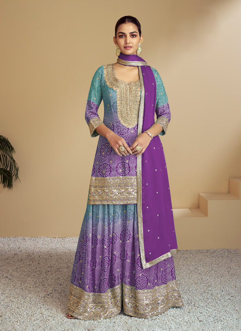 "Orchid Bloom Light Purple Embroidered palazzo suite set"