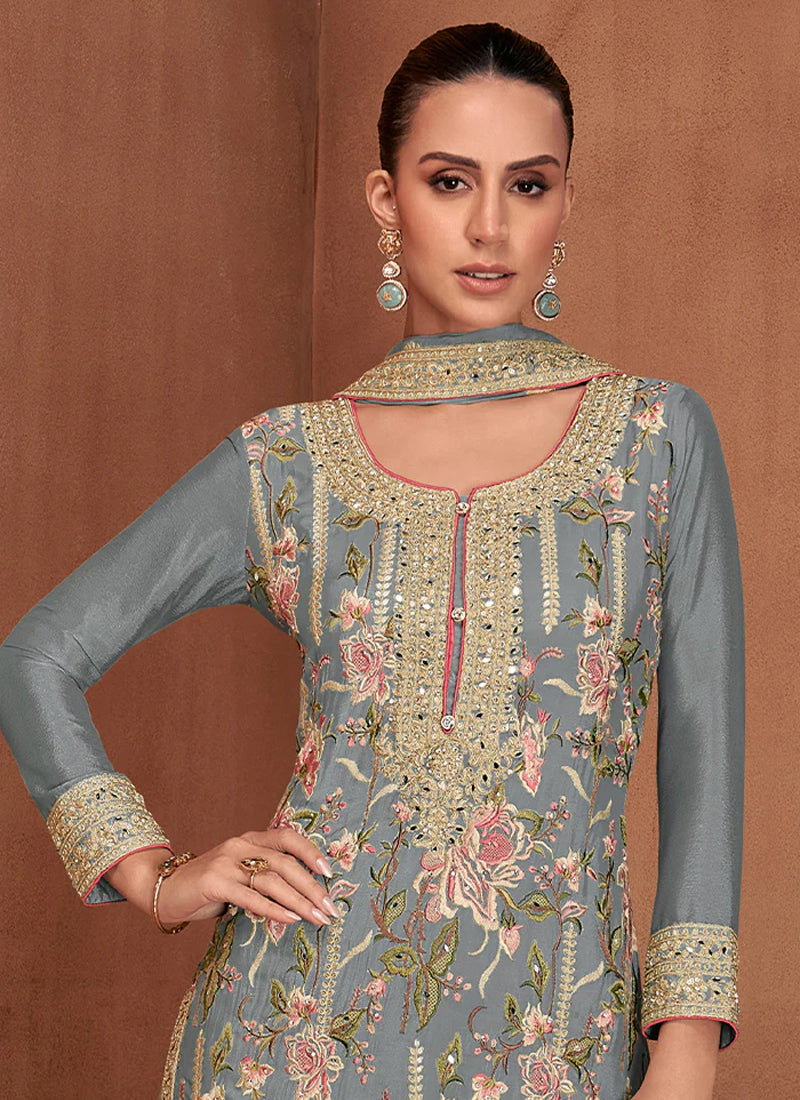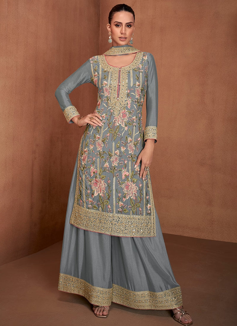 "Silver Mist Heavy Embroidery palazzo Suit Set"